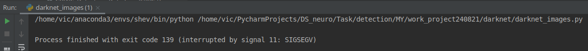 Ошибка сегментации без явного указания на место сбоя и без трассировки — указывает на то, что вероятно, ошибка произошла в С-расширении. Первым предпринятым шагом было пройти дебаггером по коду в darknet_images.py.