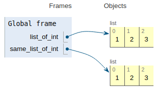 >>> print(f"id list_of_int: {id(list_of_int)}, id same_list_of_int: {id(same_list_of_int)}")